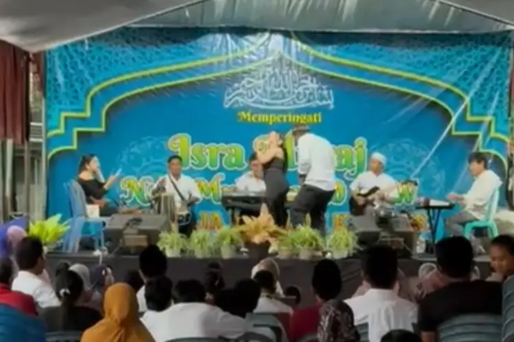 BANYUWANGI – Jagat media sosial baru-baru ini dihebohkan oleh sebuah video yang memperlihatkan aksi biduan dangdut berjoget di atas panggung dengan latar belakang spanduk peringatan Isra Mikraj. Peristiwa tersebut terjadi di Dusun Bangunrejo, Desa Parangharjo, Kecamatan Songgon, Kabupaten Banyuwangi, pada Jumat (16/1/2026).